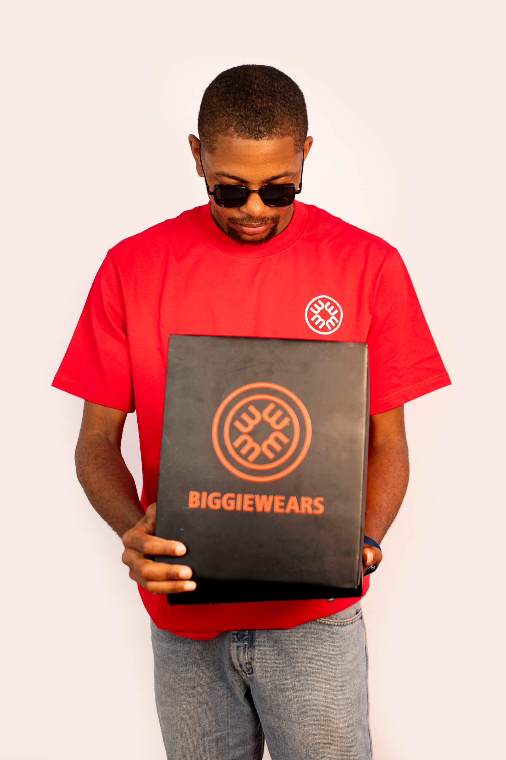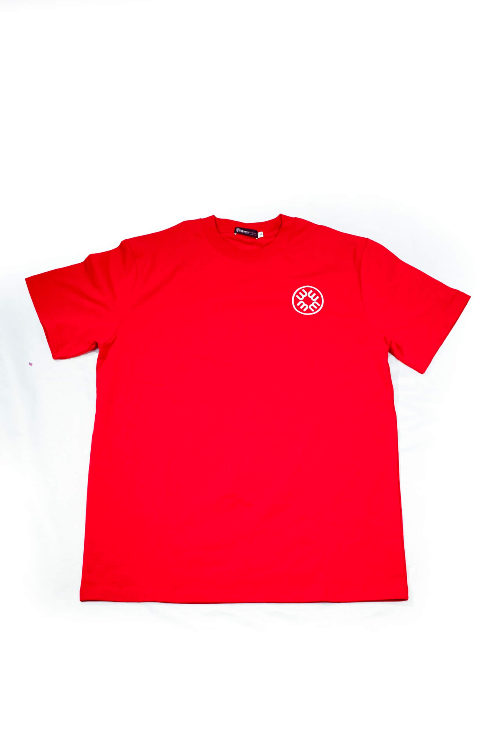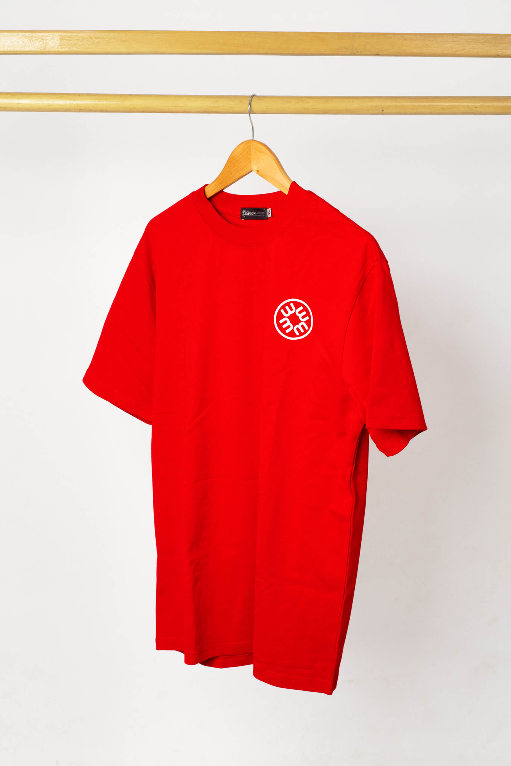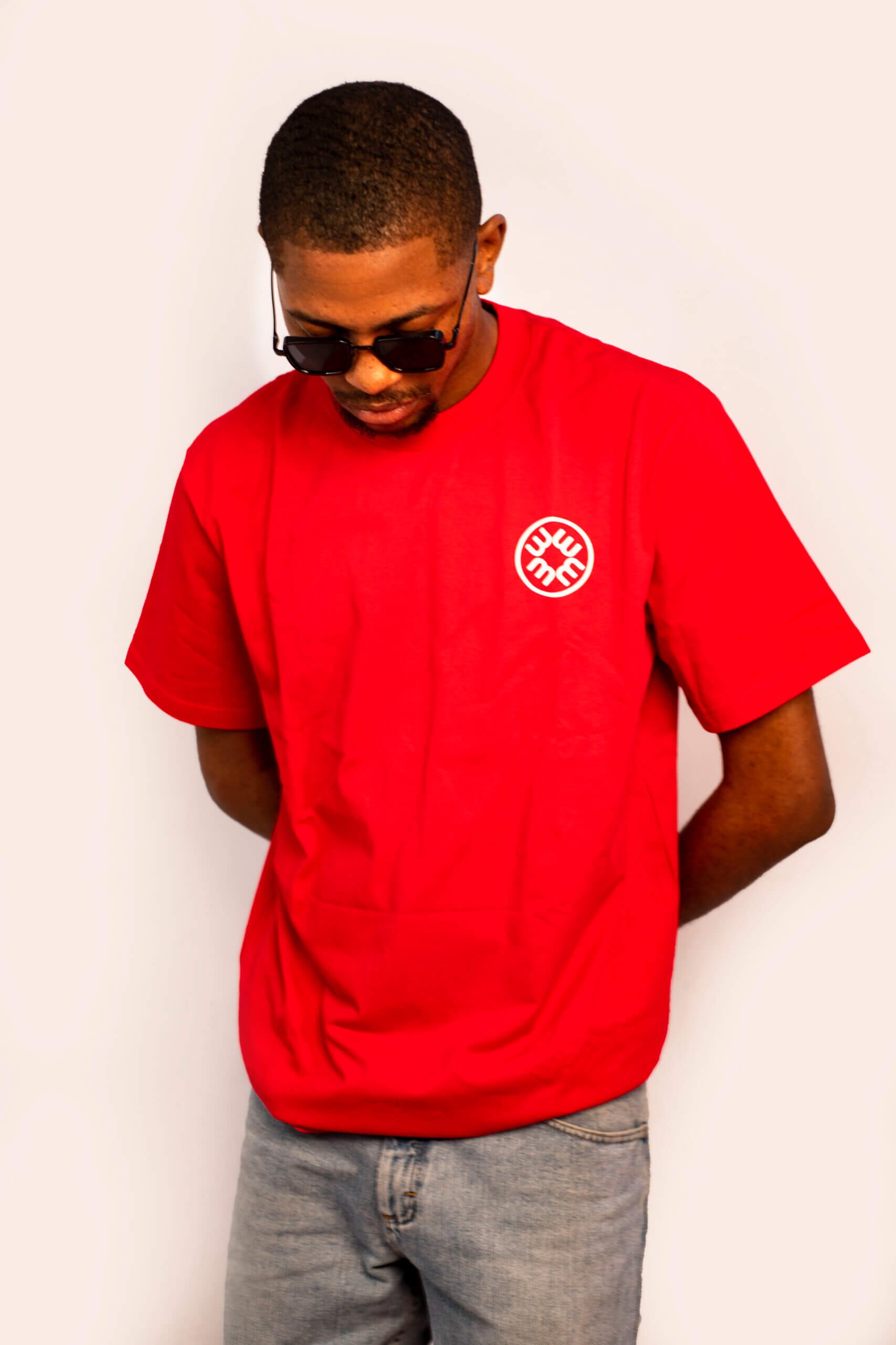 The design features a vibrant crimson canvas complemented by a small, elegant white emblem on the chest. This minimalist approach highlights the quality of the garment while making a subtle nod to the brand’s unique blend of African heritage and contemporary design.